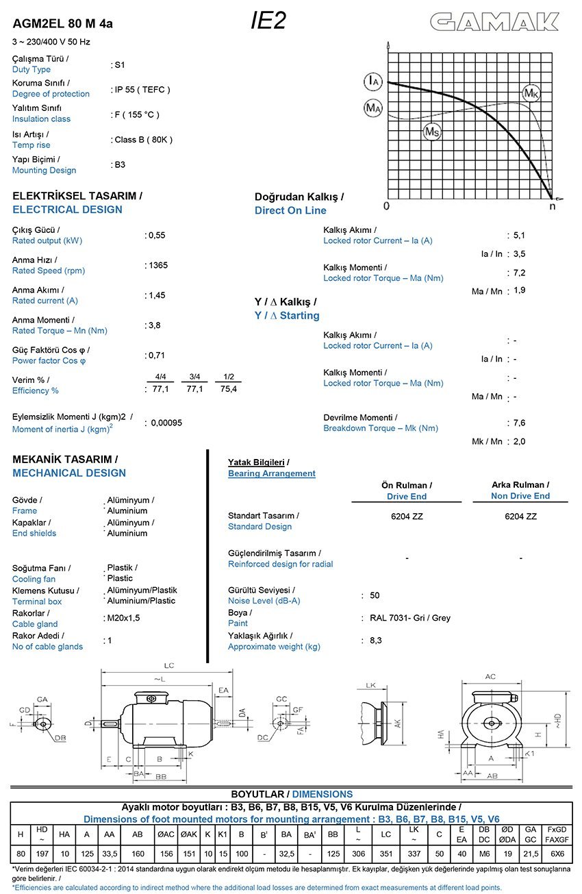 0.55 kw (3/4 HP) 1500 d/d Trifaze Elektrik Motoru